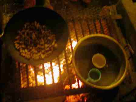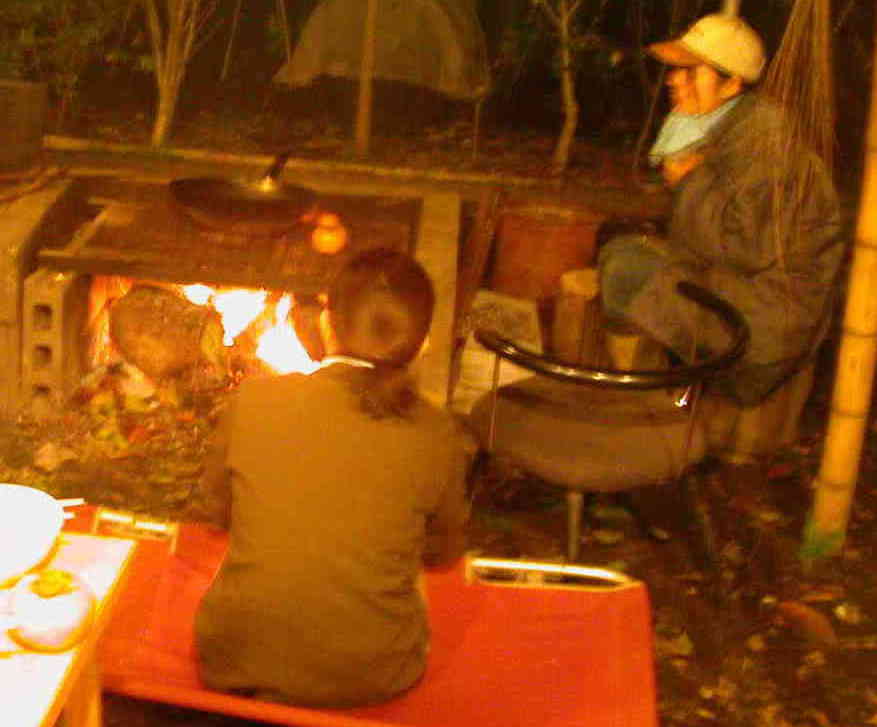 福祉農園では、暖をとるときや、食事を作るときは焚き火をします。焚き火によって大気中に戻った二酸化炭素は再び見沼の田や畑、そして里山に吸収されて、稲や野菜、里山の木々、そして野の草花を育てるのです。 田や畑、そして里山の木々や、野の草花を健全に保つことによって、放出した二酸化炭素を再び吸収するのです。 最近、焚き火をみかけなくなりました。 もっとも手近で安全な炎をあつかう経験の場が失われ、火をあつかう生活技能が衰えてしまっています。 焚き火は再生可能な循環型のエネルギーです。焚き火には、人に暖かさと心をときほぐす温もりがある。 焚き火は、大地のエネルギーを分けてもらって生活してきた先人の記憶。 |